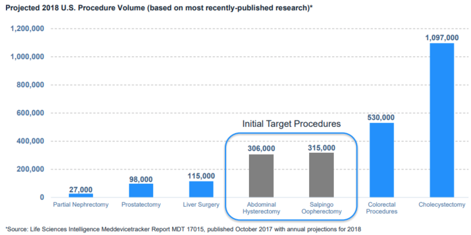 4Since the FDA approved the use of robotic systems in gynecological and urological surgeries, we have witnessed the widest adoption in these surgical disciplines. More than 600,000 procedures in both abdominal hysterectomy and salpingo-oophorectomy and oophorectomy are performed in the U.S. annually (Figure 2). A large percentage of gynecological procedures are performed as conventional abdominal surgery. This provides a lot of opportunity for Titan to expand in this space. Management has identified gynecological applications as the potential addressable market and the rationale behind this choice that is the SPORT system has the