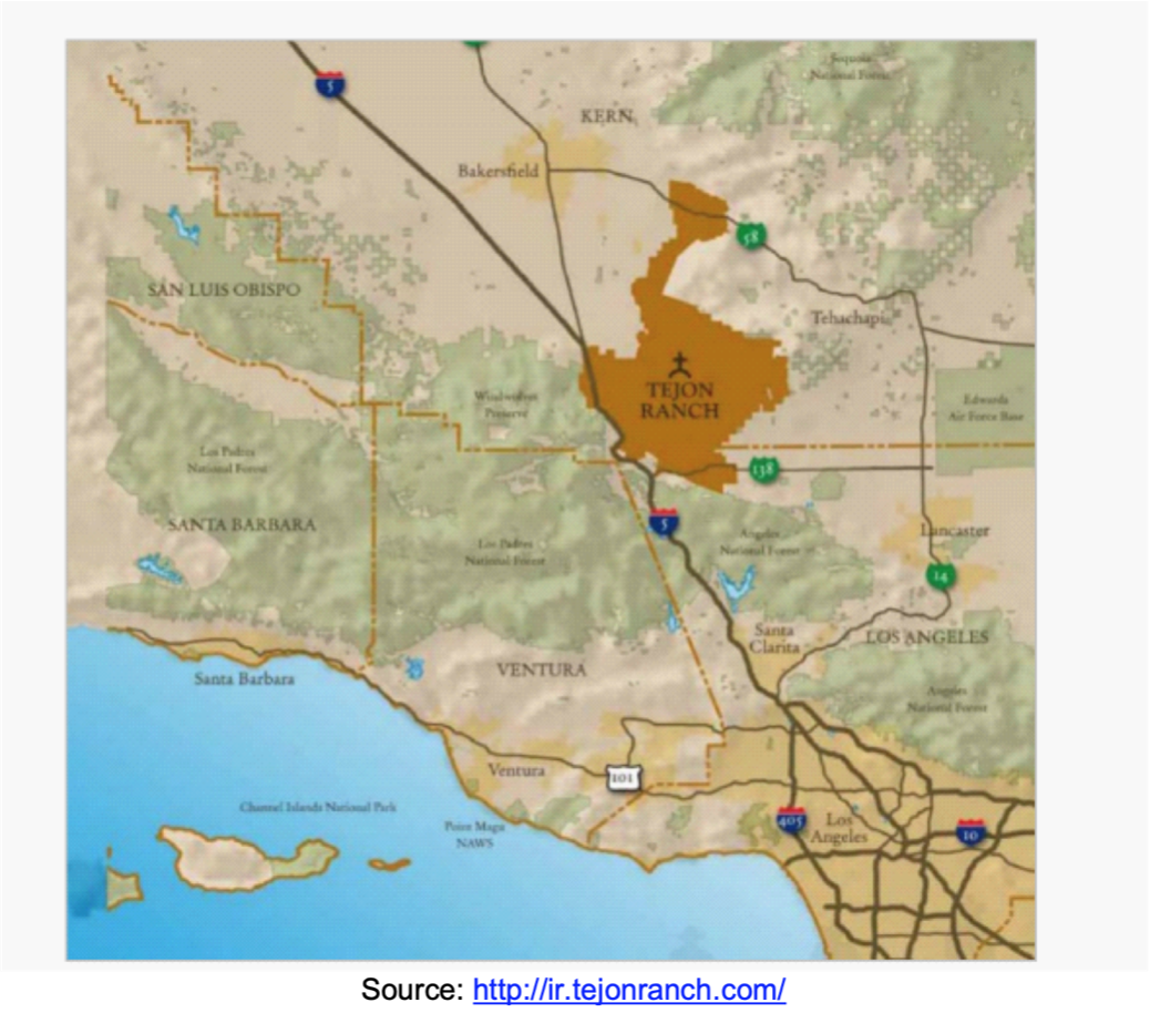 Proximity to nearby cities makes the TRCC an attractive location for the construction of apartment units. TRC’s principal asset is its extensive land holding located approximately 60 miles north of Los Angeles and 25 miles south of Bakersfield, California. Reflecting proximity to these major cities and to nearby highways – Interstate 5, for instance – it takes about 75 minutes to travel from the TRCC to Los Angeles’ Union Station. It is roughly an hour by car from Santa Clarita.