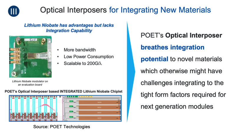 3. Many companies are calling the company to use its interposer to demonstrate their technology and devices specifically with lithium niobate modulators. POET is considering licensing its technology to these companies.