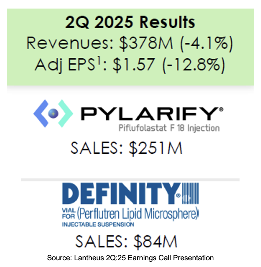 Lantheus announced second quarter 2025 results in an August 8th press release followed by a conference call before the market open. A slide deck was provided to guide investors through the event. The company subsequently filed Form 10-Q with the SEC. Second quarter revenues totaled $378 million down 4% vs. prior year levels producing GAAP earnings of $1.12 per share and adjusted earnings of $1.57 per share.