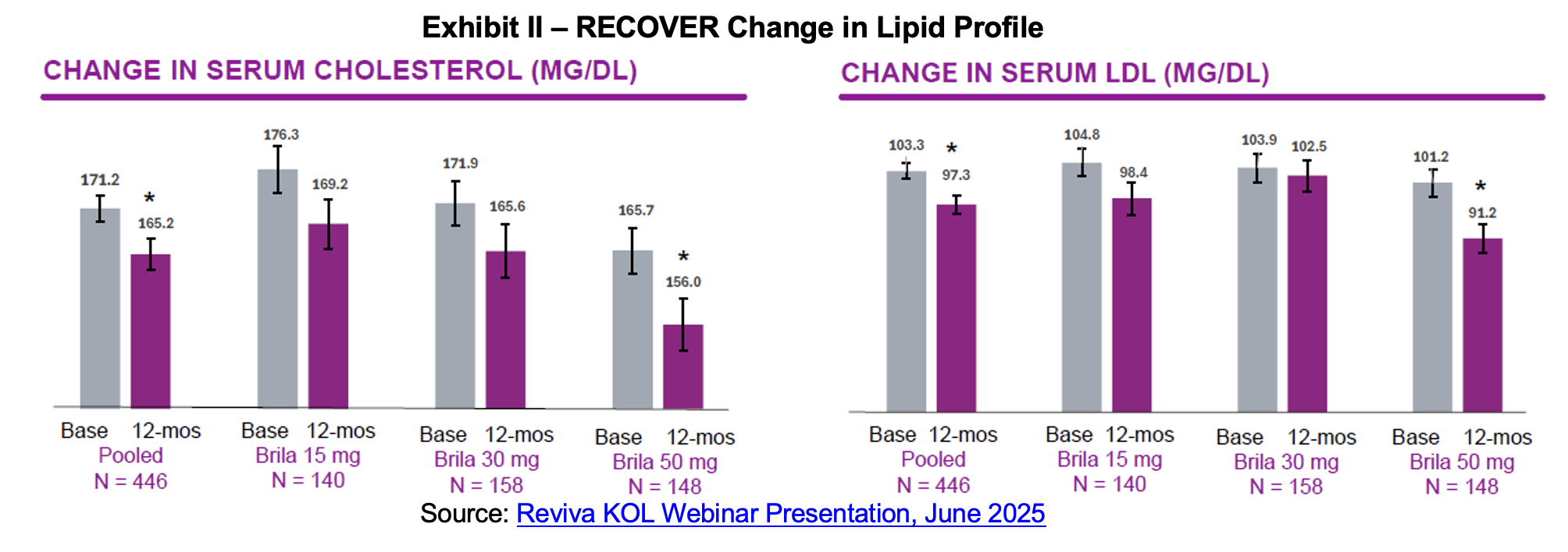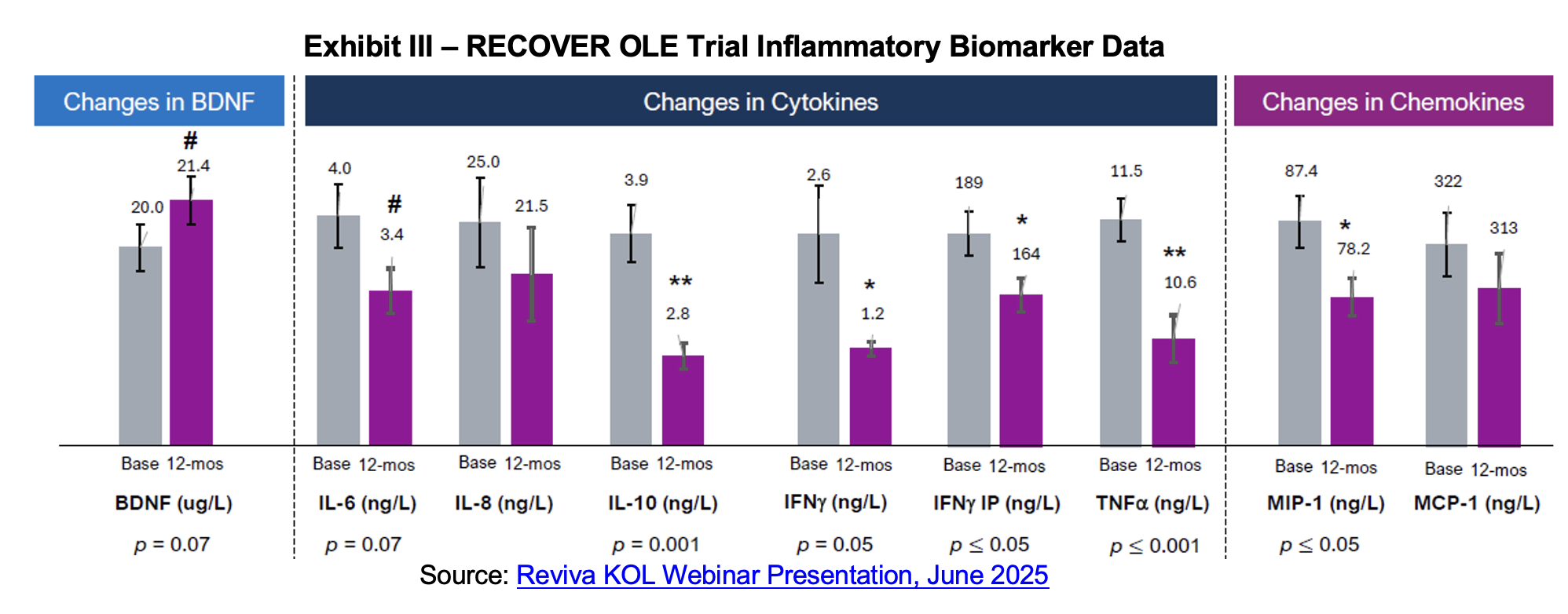 In a Form 8-K filed on May 30th, 2025, Reviva disclosed that it had established an at-the-market (ATM) facility with B. Riley Securities and Alliance Global Partners to offer up to $50 million in equity. Each transaction carries a 3% commission. While ATMs are helpful for covering day to day expenses, we believe the ATM will be inadequate to fund the RECOVER 2 trial and a public offering will be necessary to provide enough capital to fund the pivotal study.