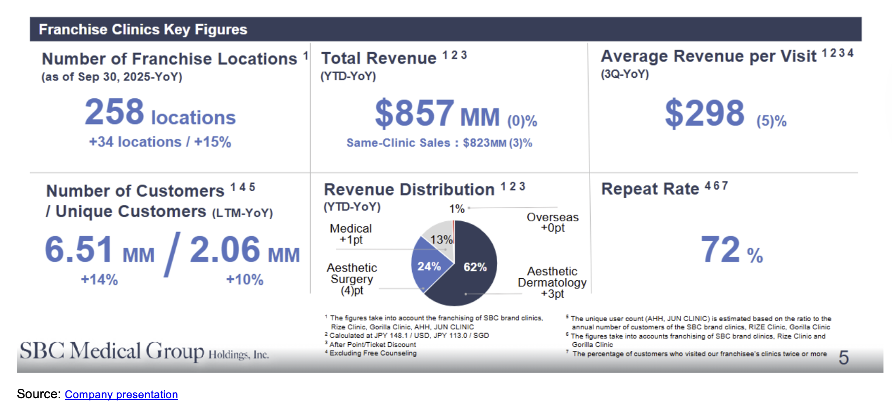 The company is also offering a broader range of franchisee services, which SBC expects will strengthen its position and market share within the aesthetic and specialized medical care areas. Clinics in the SBC franchise network have expanded their offerings to encompass a broad range of specialized medical services, including plastic surgery and infertility treatment.