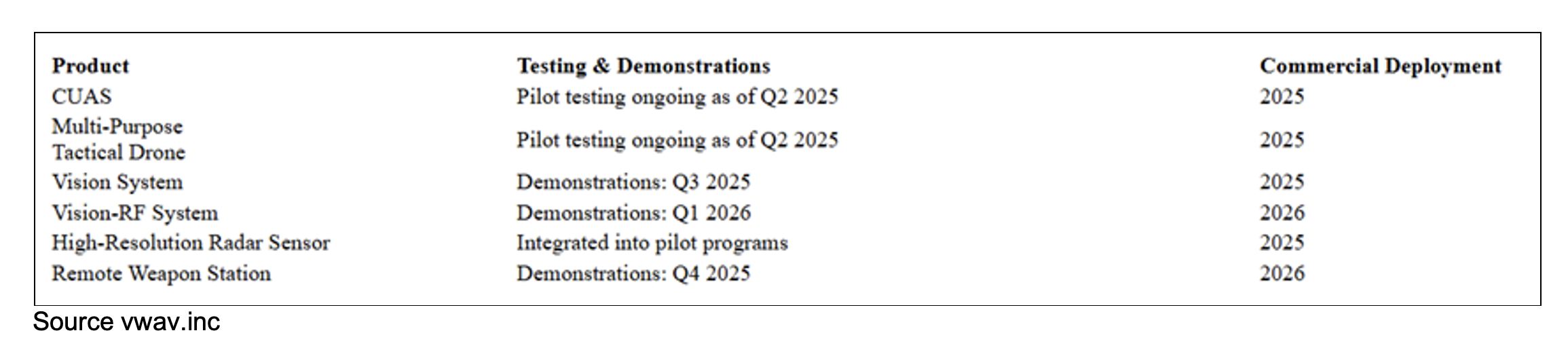During 2025, VisionWave successfully completed a series of live demonstrations and pilot programs in the United States and the United Arab Emirates with tier-1 defense contractors, validating its technologies and strengthening strategic relationships. These initiatives are expected to translate into expanded partnerships, non-recurring engineering (NRE) contracts, and follow-on production orders as programs advance toward large-scale deployment.