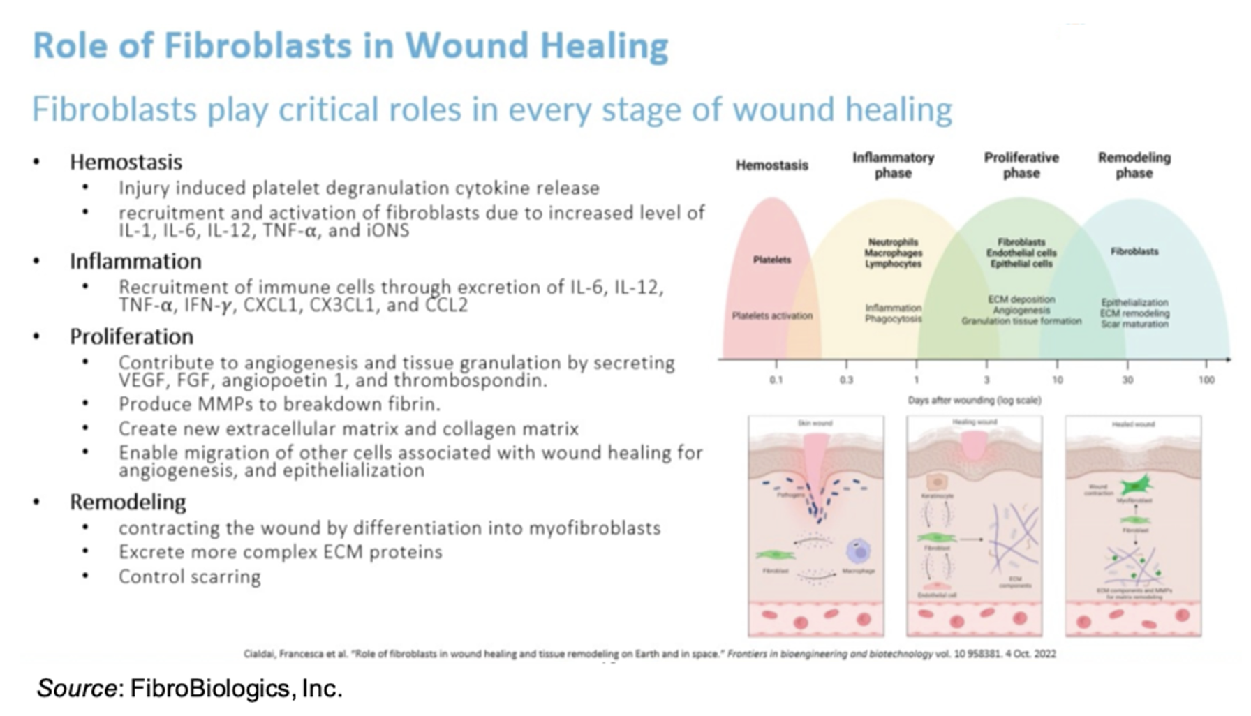In regard to safety, the company has performed a number of experiments to examine any potential adverse events associated with fibroblast-based therapy. The cells do not graft into tissue. Following application, the cells stay on the surface of the wound and initiate the healing process before gradually dying off within four days of treatment. In addition, there is no impact on CBC, WBC, liver function, or kidney function, thus showing that administration of fibroblasts appears to be quite safe.