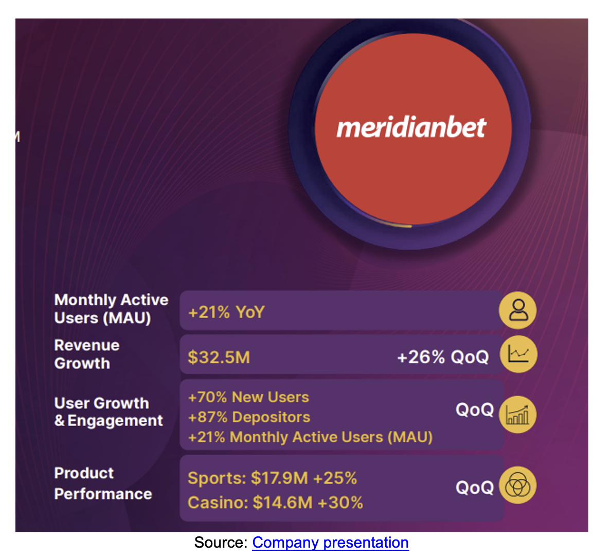 The company continues to expand its B2B gaming content provider Expanse Studios, a subsidiary of Meridian Holdings. For example, Expanse Studios recently secured a Romanian gaming license, signed a distribution deal with MerkurXtip and one with Admiral Bet, completed multiple U.S. integrations, secured Brazilian iGaming certification, and a U.S. and EU distribution deal with Bragg Gaming, among other measures.