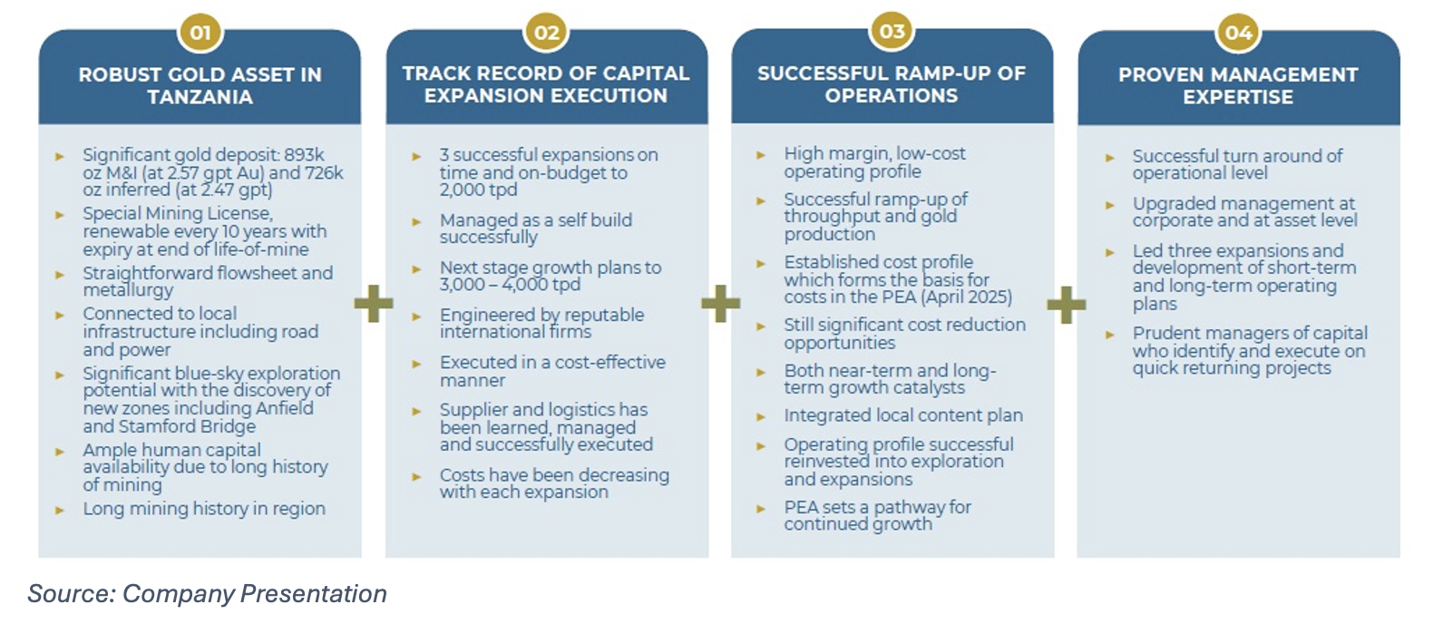 Liquidity strengthened further, with the current ratio improving to ~1.7x and the ROM stockpile rising to 22,891 ounces post‑quarter. Additional upside stems from a mine‑plan reassessment under record gold prices, which could materially lower cut-off grades and expand resources and reserves.