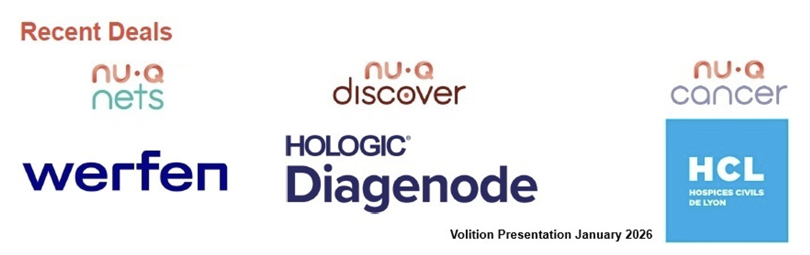 On February 10, 2026, Volition announced the appointment of Medical & Biological Laboratories Co. Ltd as a non-exclusive distributor of Nu.Q® Discover assays in Japan. Volition is now serving almost 100 clients worldwide with nucleosome-based biomarkers under Nu.Q Discover.